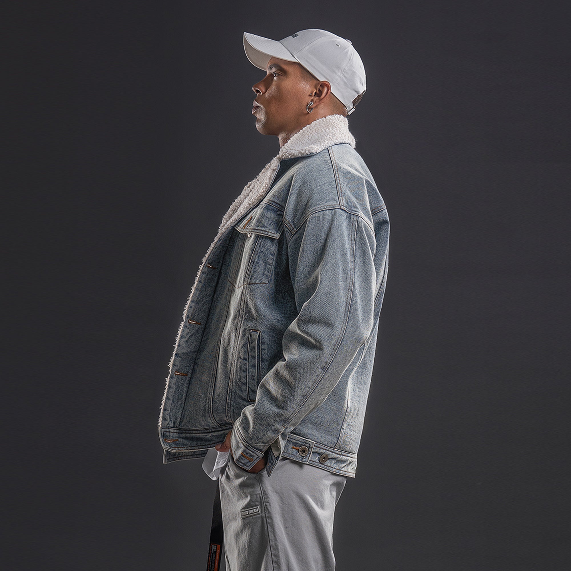 BDPOWERUP Sherpa-Lined Denim Jacket – Thick Winter Fleece Collar
