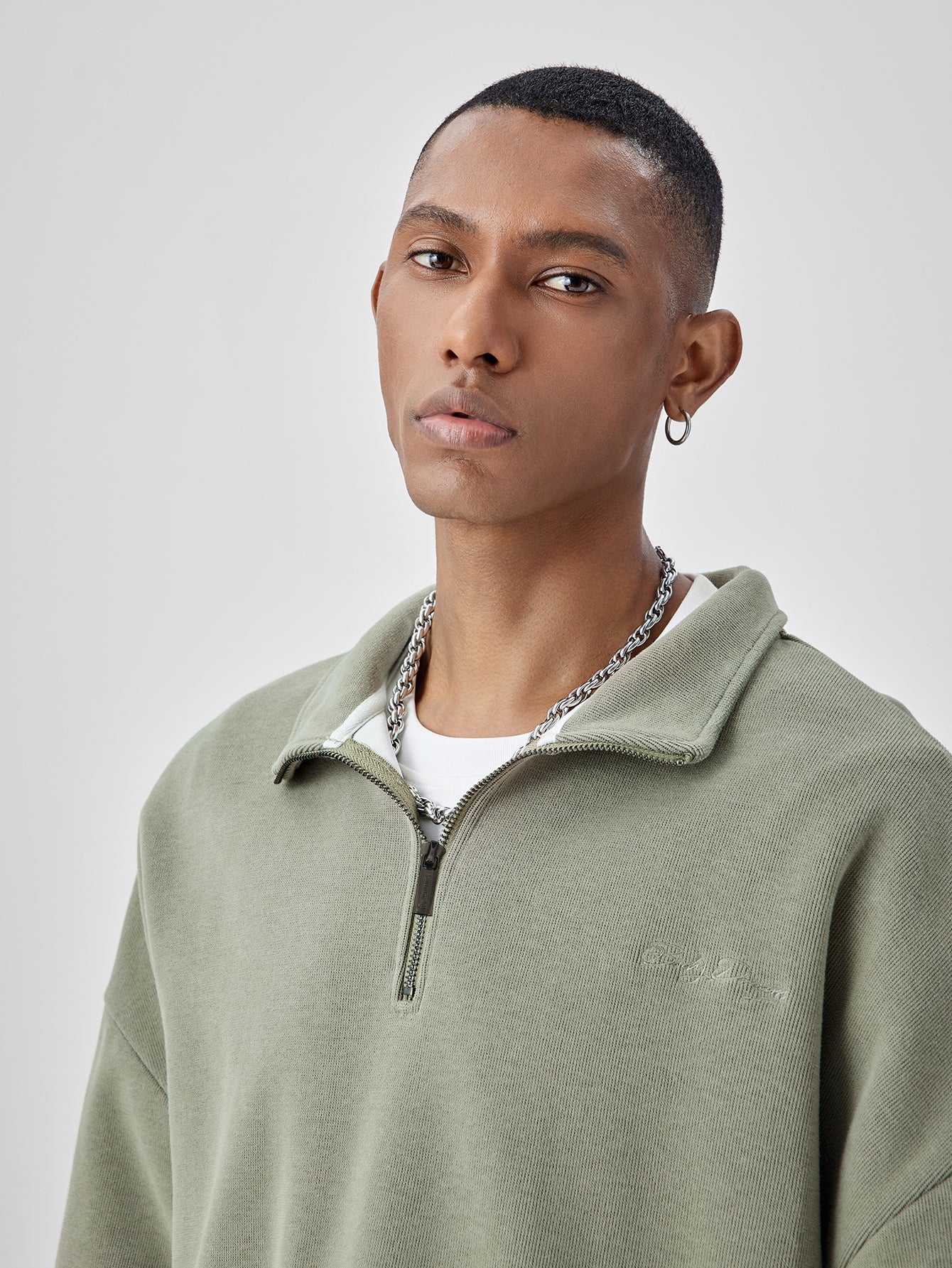 BODYDREAM Half-Zip Sweatshirt for Men - Fall/Winter Handwritten Font Embroidered Casual Top