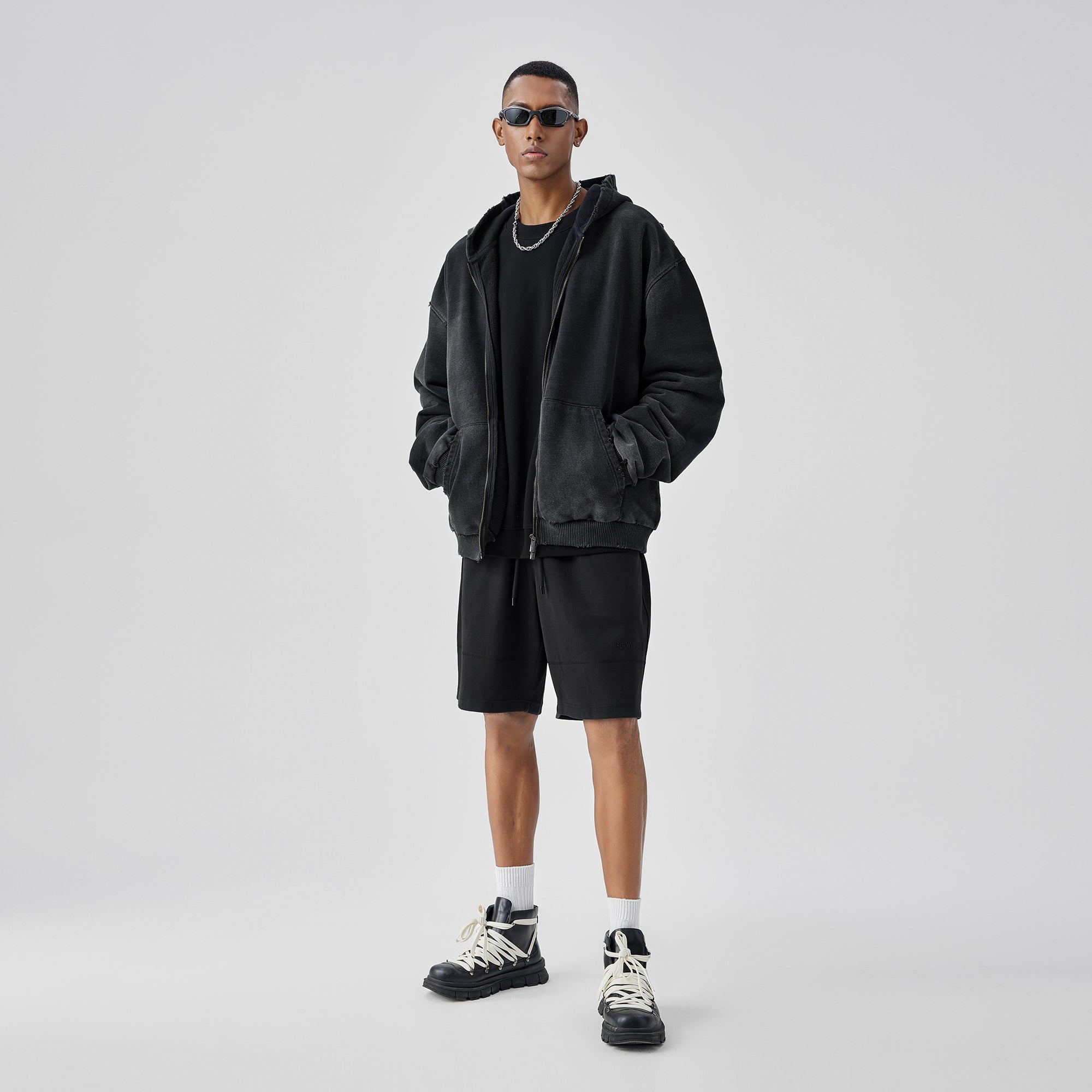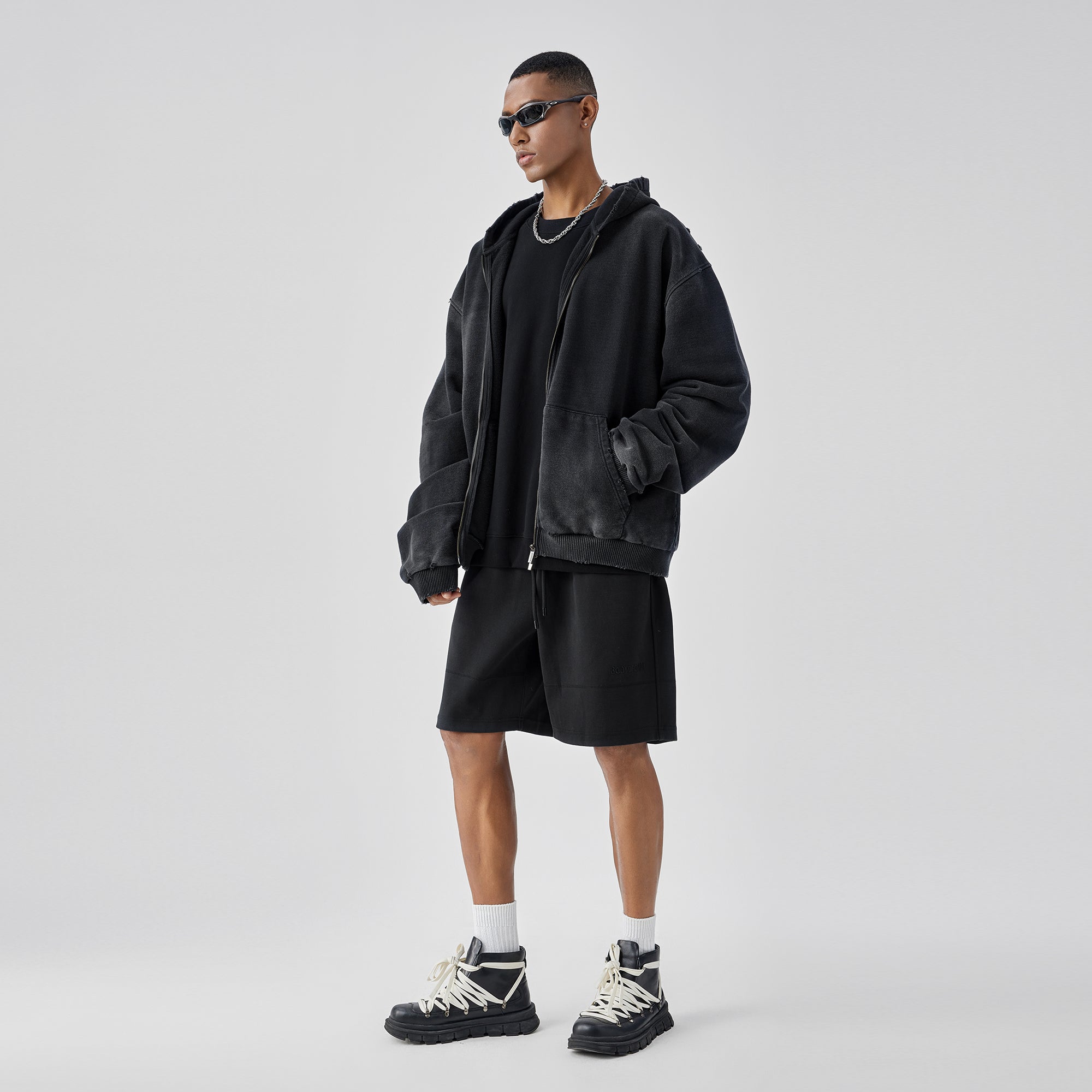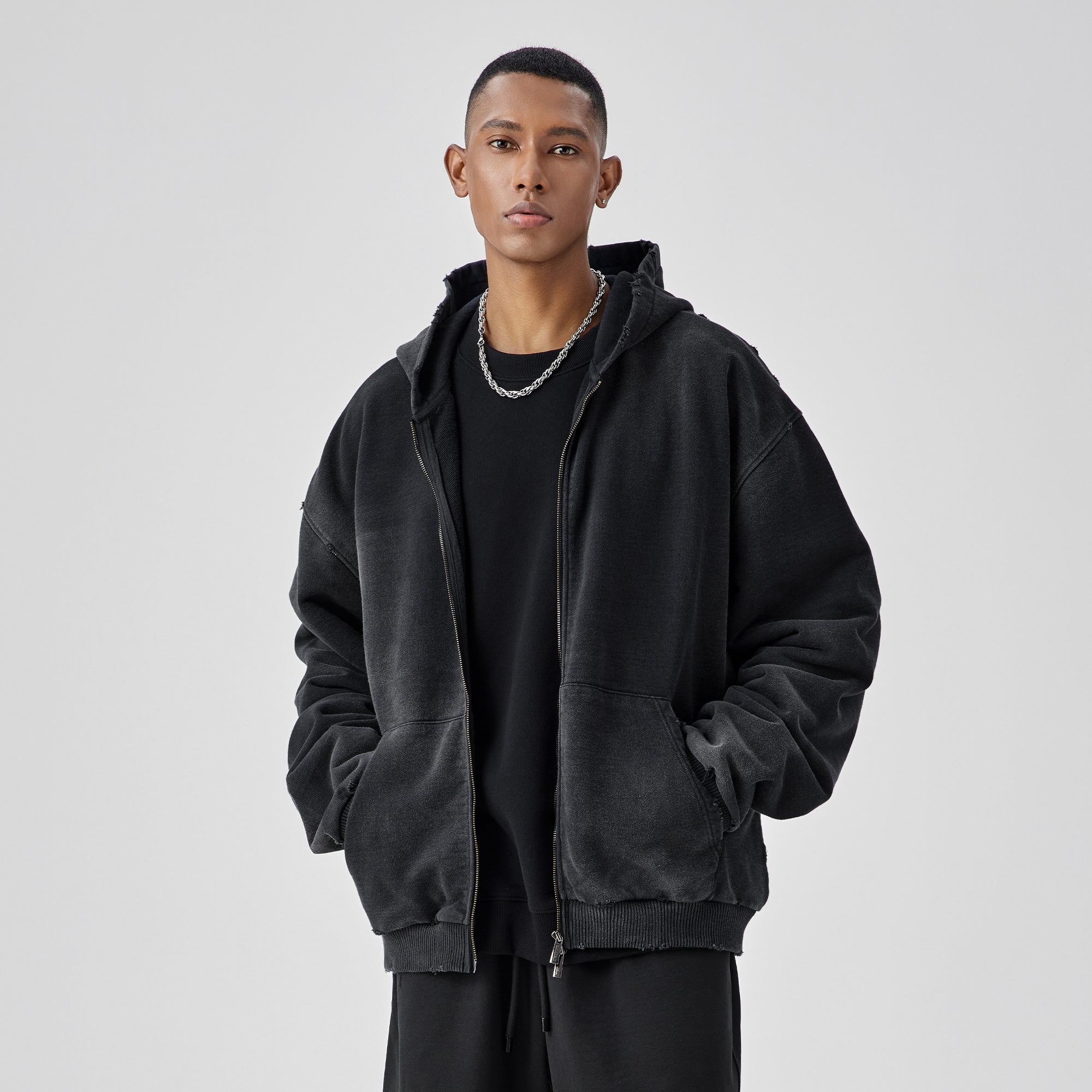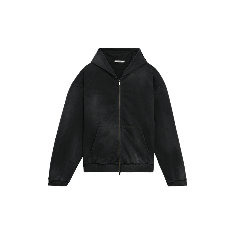 BODYDREAM Heavyweight Distressed Open-Front Cotton Hoodie Loose-Fit